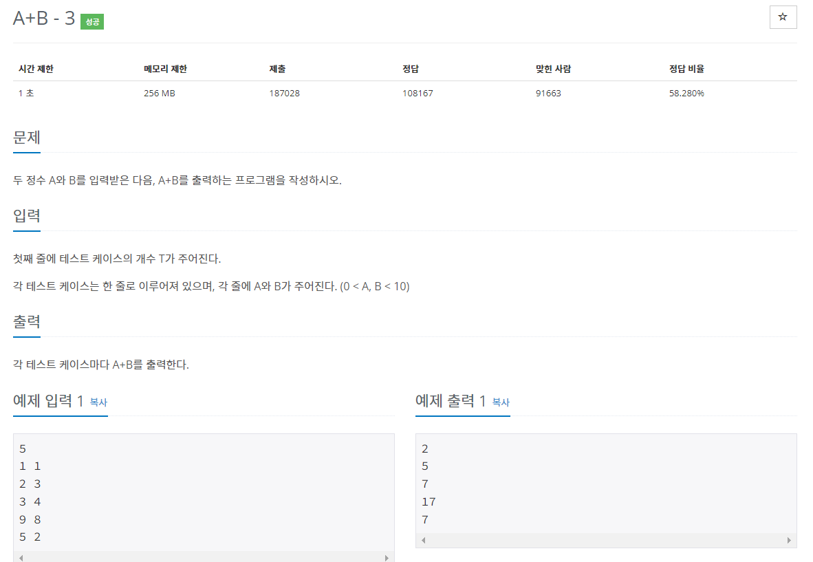 두 정수 A와 B를 입력받은 다음, A+B를 출력하는 프로그램을 작성하시오.